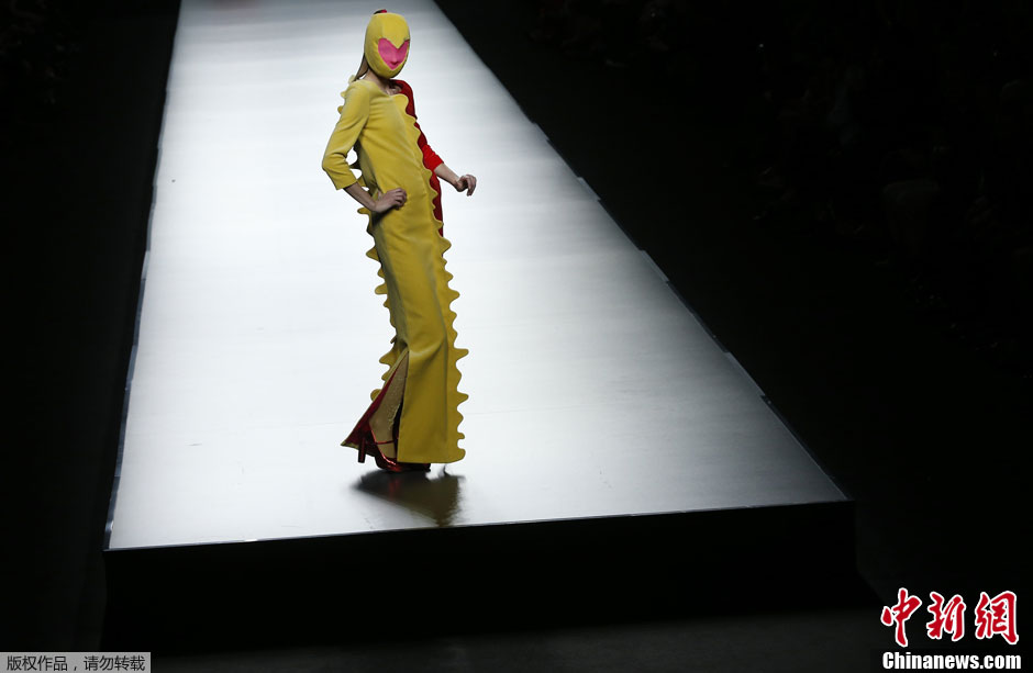 当地时间2月20日,西班牙马德里,2013马德里秋冬时装周,模特T台走秀进行展示。