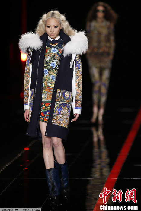 当地时间2月21日,意大利米兰,2013米兰秋冬时装周,模特T台走秀进行展示。