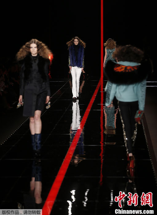 当地时间2月21日,意大利米兰,2013米兰秋冬时装周,模特T台走秀进行展示。