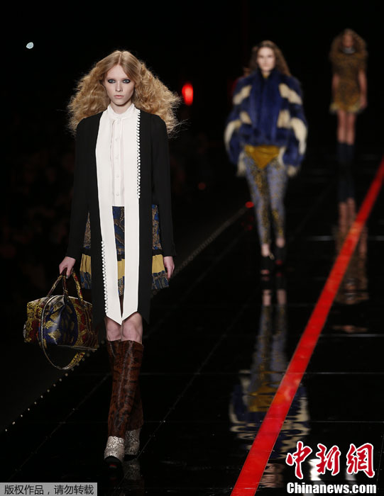 当地时间2月21日,意大利米兰,2013米兰秋冬时装周,模特T台走秀进行展示。