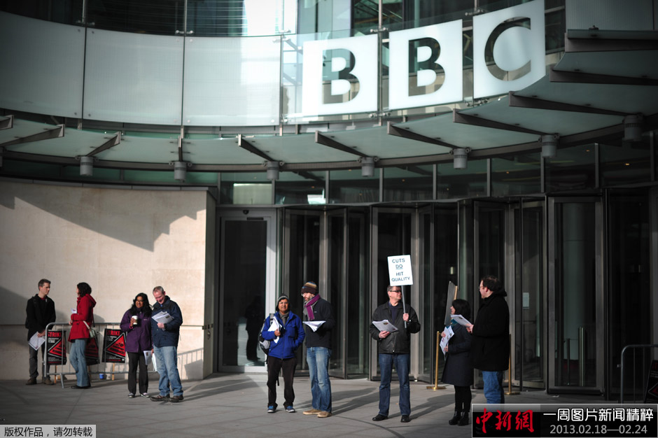 当地时间2月18日,英国格拉斯哥,英国广播公司(BBC)记者开始24小时罢工,以抗议公司的强制裁员行为,BBC当日的电视和电台播出受到影响。