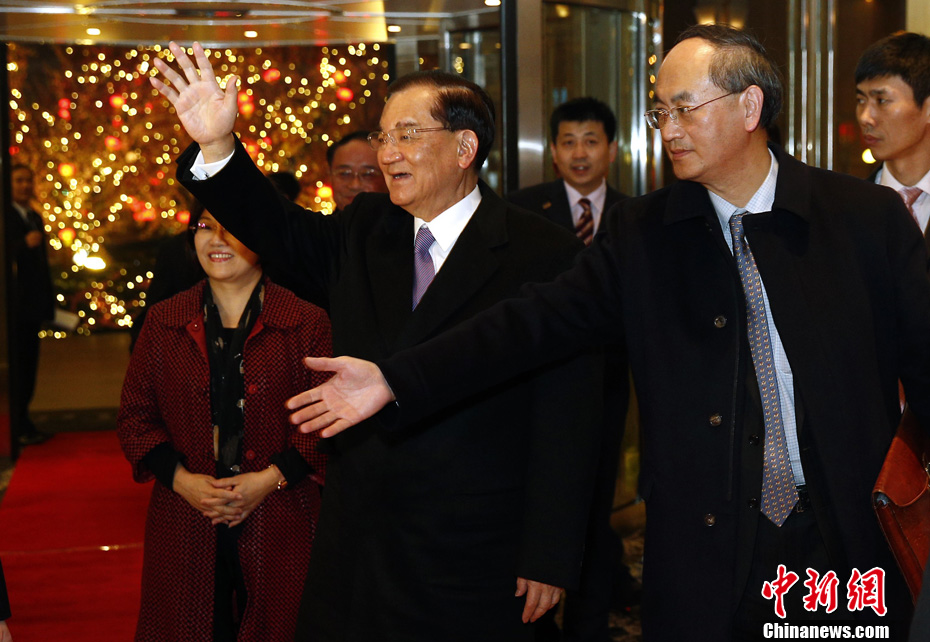 2月24日晚,国民党荣誉主席连战抵达北京,图为他到达下榻的金融街威斯汀酒店。中新社发 张浩 摄