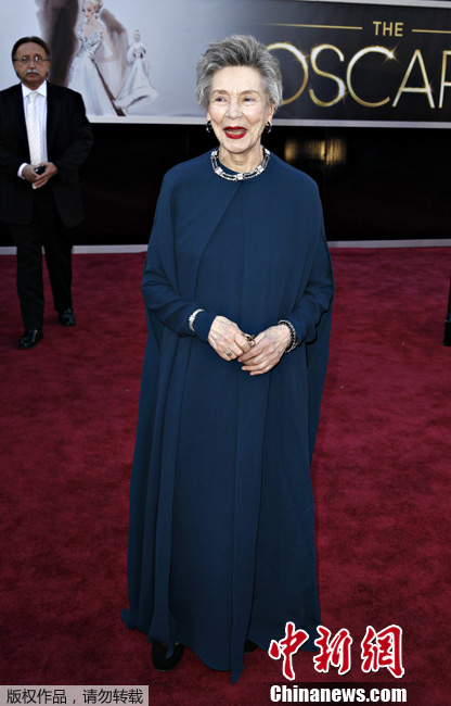 第85届奥斯卡金像奖于北京时间2月25日上午(美国当地时间2月24日下午)在好莱坞杜比剧院举行,群星闪耀红毯。图为85岁最佳女主角提名者埃玛妞-丽娃亮相。
