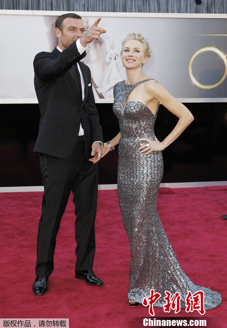 直击第85届奥斯卡红毯 娜奥米-沃茨银色礼服闪耀亮相