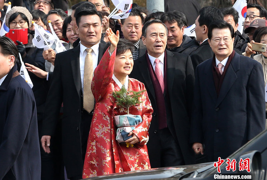 韩国总统就职典礼结束 朴槿惠穿韩服进入青瓦台