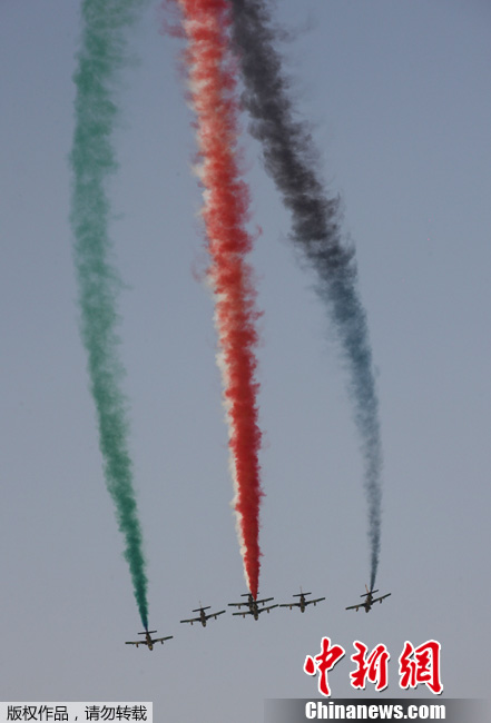 2013年2月25日,科威特为庆祝独立52周年,在科威特城举行了精彩的军事表演,飞行表演队参与其中,上演了一场令人眼花缭乱的飞行秀。