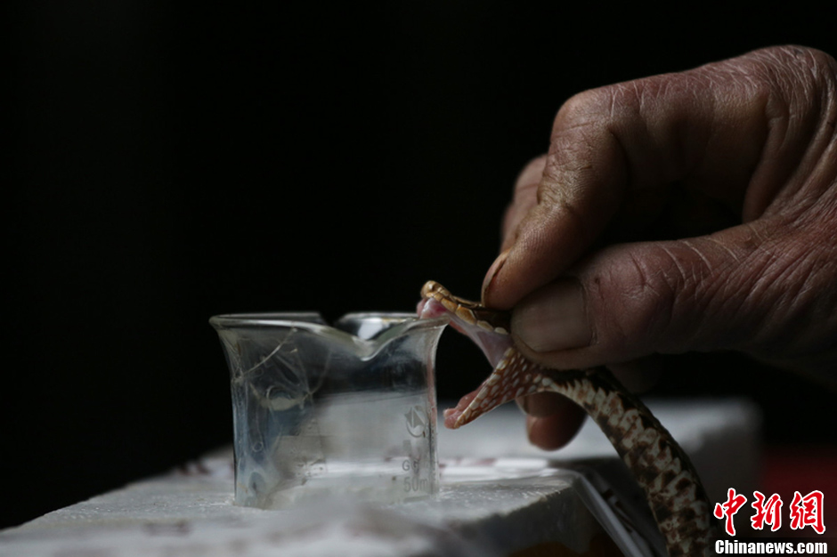 图为一位村民正在取蛇毒,蛇毒拥有多种医疗价值。 Zhangrq 摄 图片来源:东方IC 版权作品 请勿转载