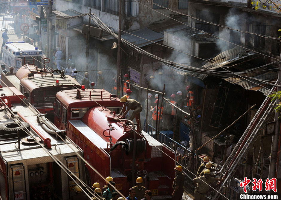 印度加尔各答一市场发生火灾 致19人丧生