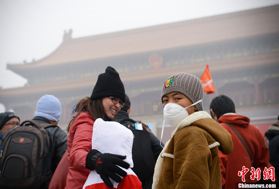 2月28日,游客在天门地区游览。北京当日再次遭遇严重雾霾天,空气污染严重,能见度差。刘震 摄