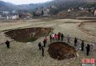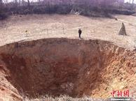 2012年9月的一个夜晚,一阵土石碰撞的“隆隆”声,让广元利州区工农镇三颗村6组的村民黄大金感到惊奇,拴在房屋外边的黄牛也叫了一整夜。第二天才发现“隆隆”声正是地陷的声音,在黄牛旁边出现了一个小“坑”。接下来的几天,“隆隆”声始终不断,6昼夜后,原有的小坑变成了直径近20米,深不见底的“天坑”。 “轰隆隆隆……响了几天。”