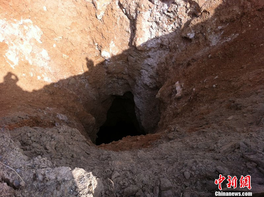 近日,广元利州区工农镇三颗村6组一块荒地里出现了巨型“天坑”。经当地地质工作人员勘测,天坑直径达20米,深不见底。据附近村民介绍,天坑是去年9月经过6个昼夜的地面塌陷形成,过程中“隆隆”声不断。杜玉全 摄 (文字来源:华西都市报) 图片来源:CFP视觉中国