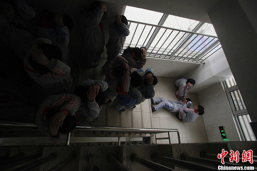 2月28日,山东济南行知小学操场上,600多名学生在老师的指导下,进行踩踏事故演练,老师支招“抱头”来自救。据了解,2月27日,湖北襄阳老河口市薛集镇秦集小学发生一起因拥挤引起的踩踏事件后。济南行知小学进行了防止踩踏事故演练,强化了全体师生的安全意识,提高了突发事件应急处理和逃生自救。陈宁 摄 图片来源:东方IC 版权作品 请勿转载