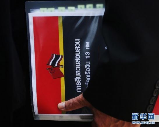 图为9月19日,泰国警察总署副总警监班西里的随从所带文件也用中泰两国国旗标注。记者 王申 摄 图片来源:新华网