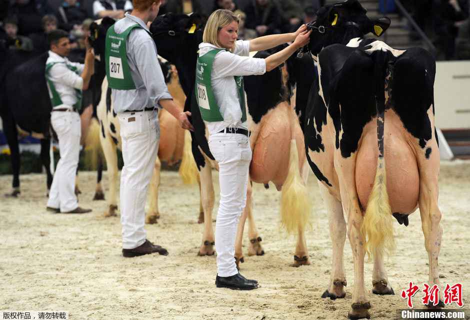 当地时间2月28日,德国Verden,当地举行的农业展览会上,第40届“奶牛小姐”选美大赛举行。