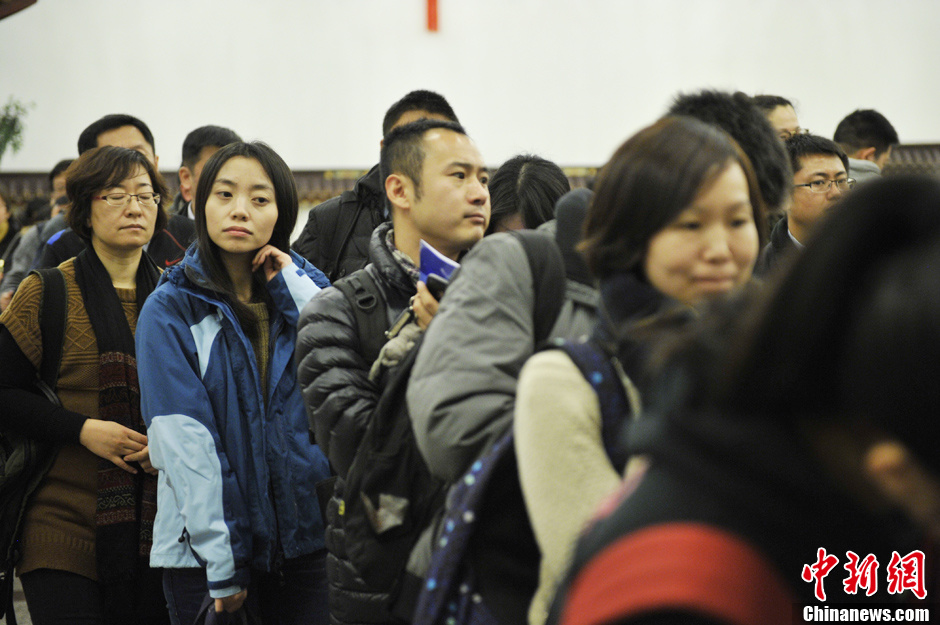 3月1日,大批记者在北京人民大会堂排队领取采访证件。随着2013年全国两会开幕在即,一年一度的新闻大战即将展开。中新社发 韦亮 摄