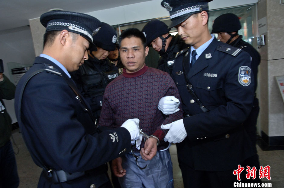 3月1日,根据最高人民法院院长签发的执行死刑命令,云南省昆明市中级人民法院依法对糯康、桑康·乍萨、依莱、扎西卡四名湄公河案罪犯执行了死刑。图为扎西卡被带出云南省看守所前往行刑地点。中新社发 张浩林 摄