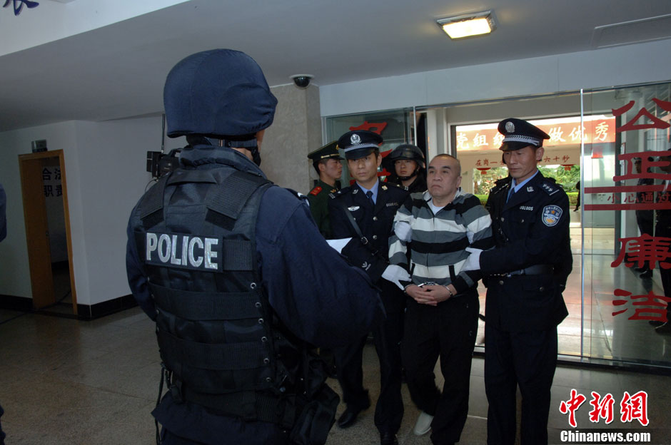 3月1日,根据最高人民法院院长签发的执行死刑命令,云南省昆明市中级人民法院依法对糯康、桑康·乍萨、依莱、扎西卡四名湄公河案罪犯执行了死刑。图为依莱被带出云南省看守所前往行刑地点。中新社发 张浩林 摄