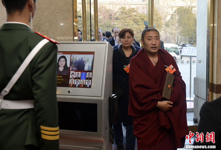 3月1日,全国政协宗教界别委员抵达驻地报到。中新社发 侯宇 摄