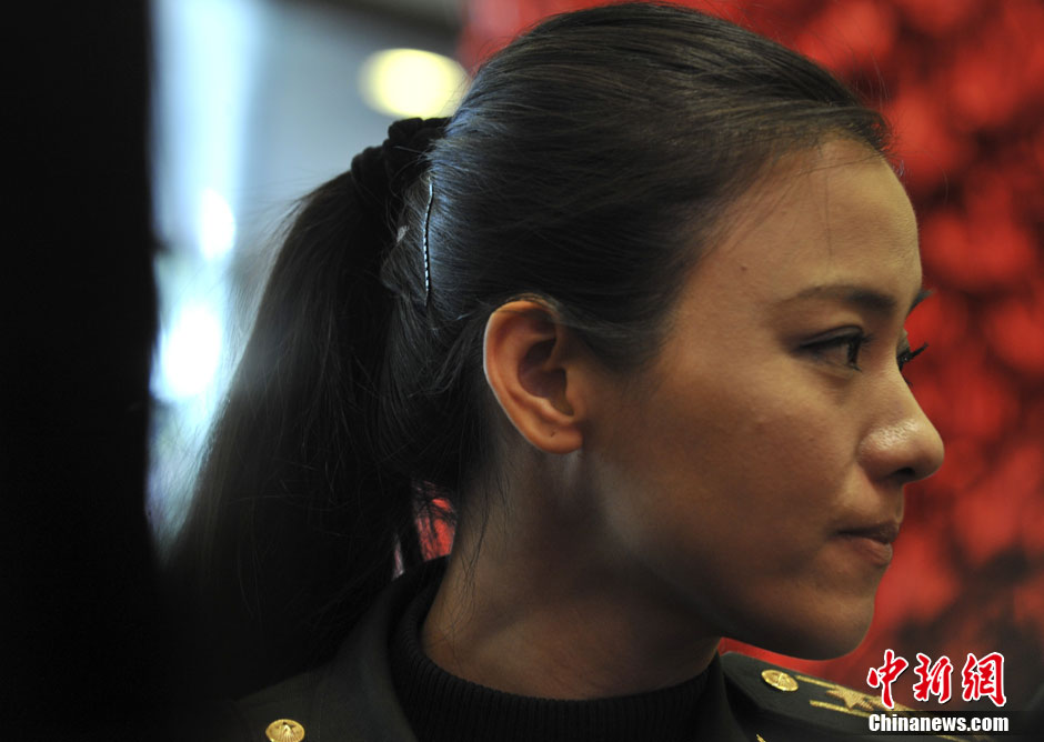 3月1日,全国政协委员、军旅歌手陈思思在政协驻地接受媒体采访,她表示对北京空气污染非常担忧。中新社发 贾国荣 摄