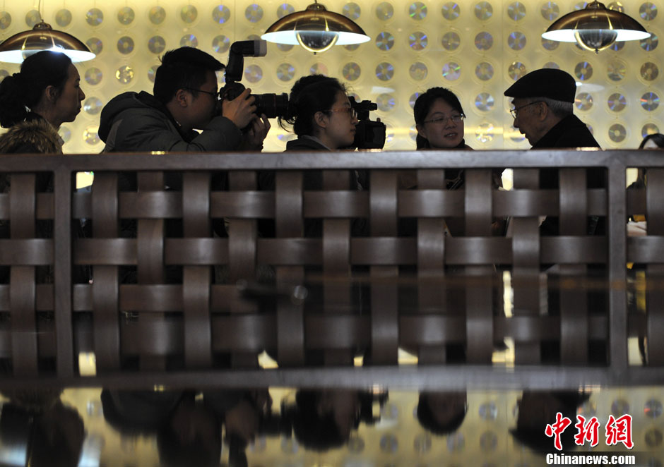 3月1日,参加全国政协十二届一次会议的著名油画家靳尚谊,面对记者追访时表示,对当前中国艺术教育的状况非常担忧。中新社发 贾国荣 摄