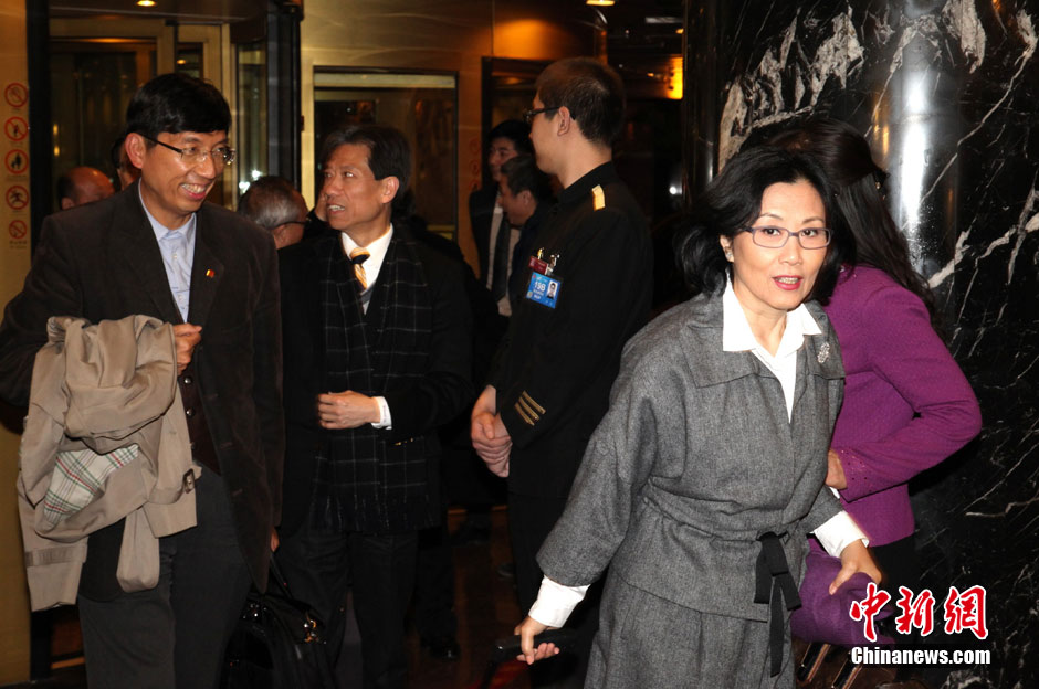 3月1日,全国政协委员、香港前政务司司长唐英年在政协委员驻地办理入住手续。当天,参加全国政协第十二届第一次会议的部分香港和澳门委员陆续抵达北京。中新社发 陈小愿 摄