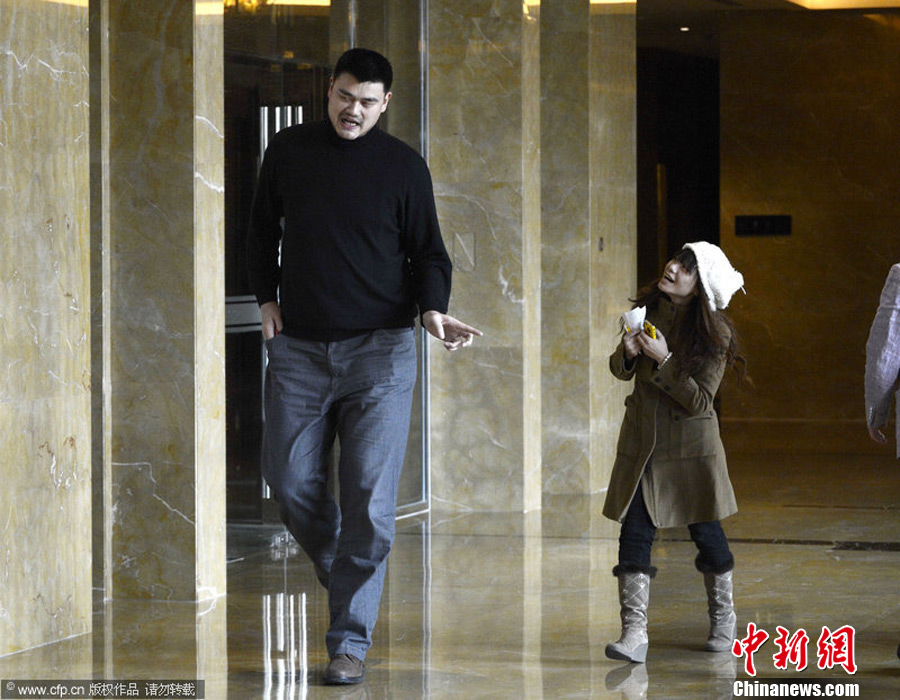 图为3月2日,姚明委员大步前行,女记者紧追不舍。图片来源:CFP视觉中国