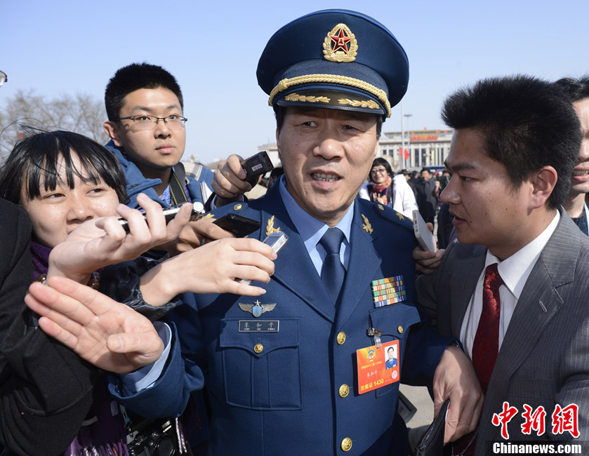 3月3日下午,全国政协十二届一次会议在北京人民大会堂隆重开幕。朱德之孙朱和平委员入场前被记者追问“钓鱼岛”、航母等热点问题。中新社发 侯宇 摄