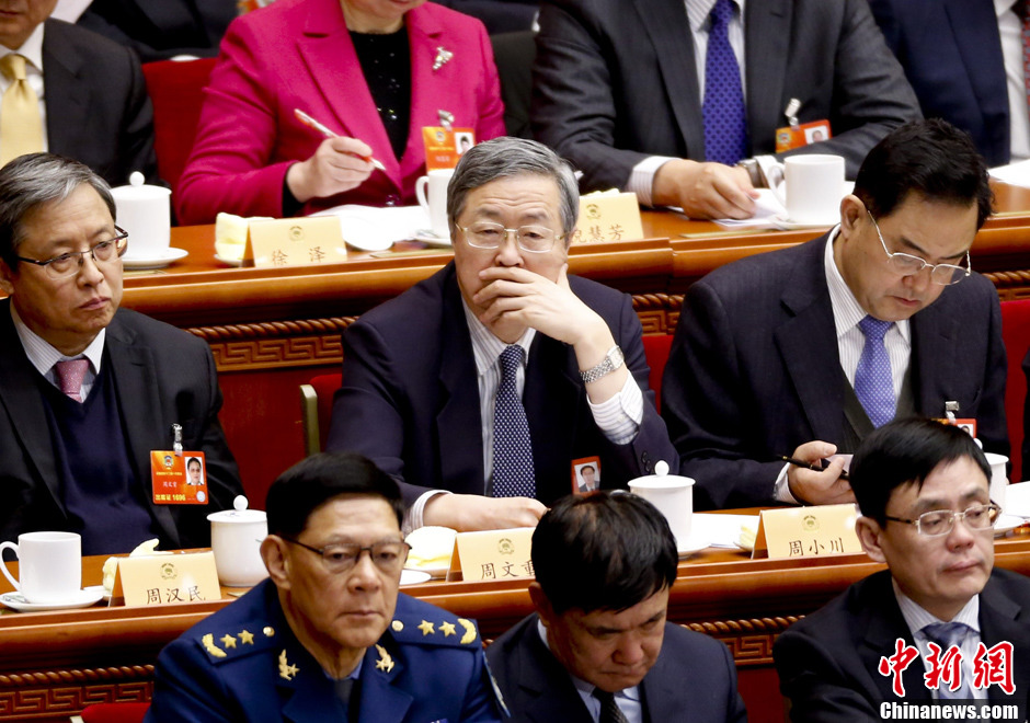 3月3日下午,全国政协十二届一次会议在北京人民大会堂隆重开幕,周小川出席开幕会。中新社发 杜洋 摄
