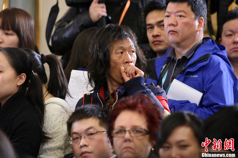 3月4日,北京,十二届全国人大一次会议在人民大会堂一楼新闻发布厅举行新闻发布会。会上,有位记者打扮“犀利”,引人注目。米杜 摄 图片来源:CFP视觉中国
