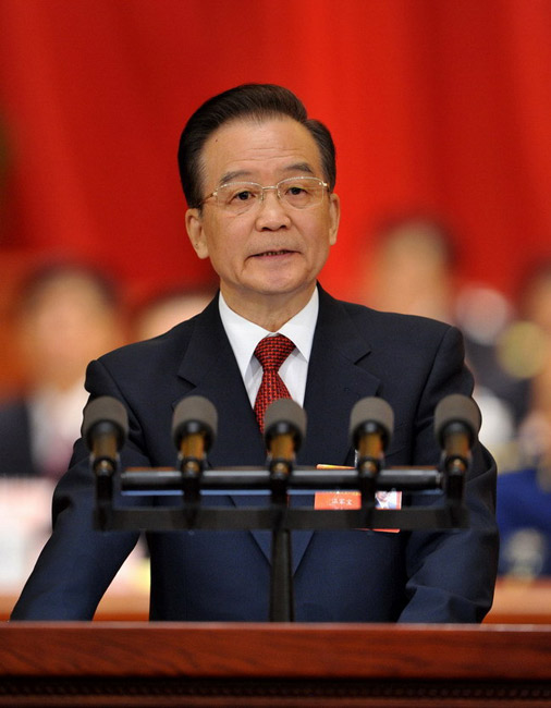 3月5日,第十二届全国人民代表大会第一次会议在北京人民大会堂开幕。国务院总理温家宝作政府工作报告。黄敬文 摄 图片来源:新华网