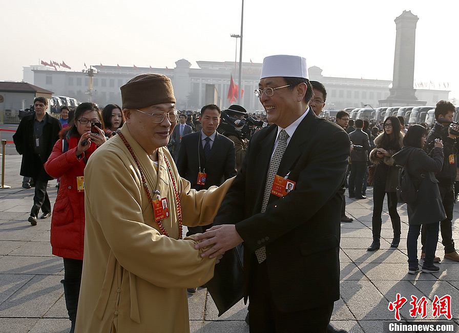 人大代表大会堂前寒暄