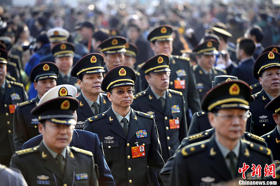 3月5日,第十二届全国人民代表大会第一次会议在人民大会堂开幕,解放军代表大步走向人民大会堂。中新社发 韦亮 摄