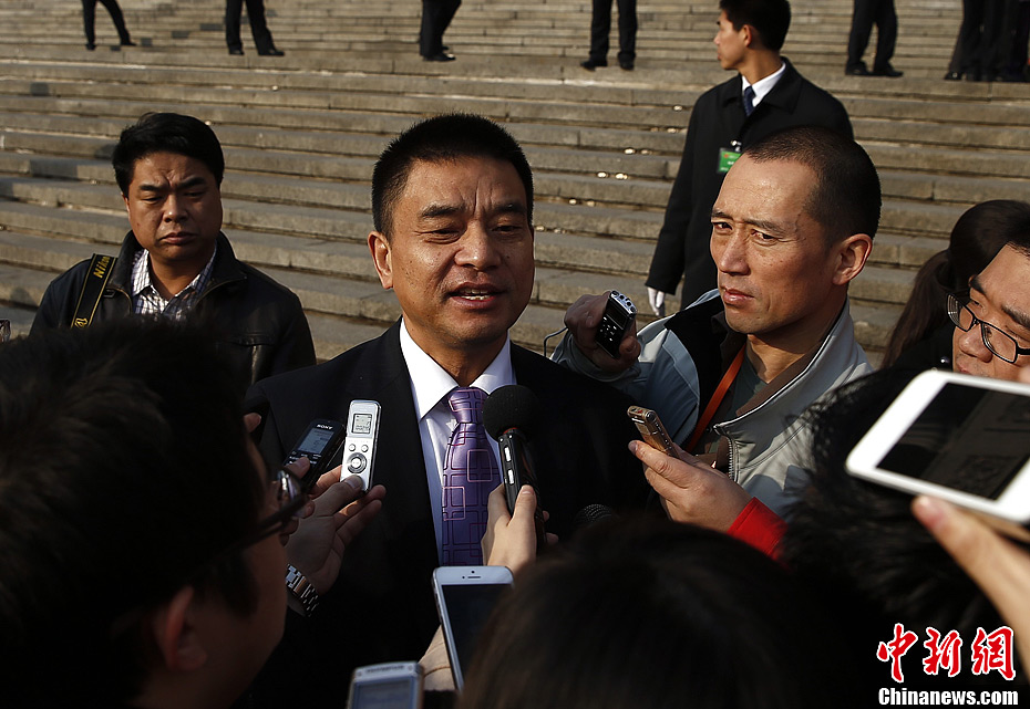 3月5日上午,第十二届全国人民代表大会第一次会议在北京人民大会堂开幕。全国人大代表、新希望集团董事长刘永好在接受媒体采访时表示,中小型、小微企业贷款难是长期的问题,建议银行能将贷款额度的20%向中小型企业倾斜。中新社发 张浩 摄