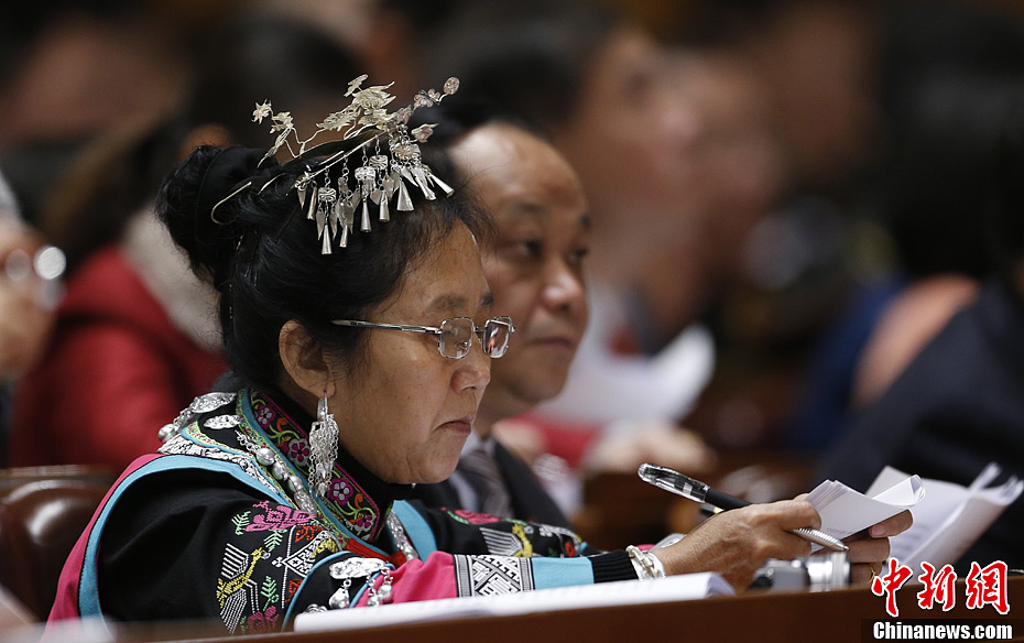 3月5日上午,第十二届全国人民代表大会第一次会议在北京人民大会堂开幕。少数民族代表参会。中新社发 盛佳鹏 摄