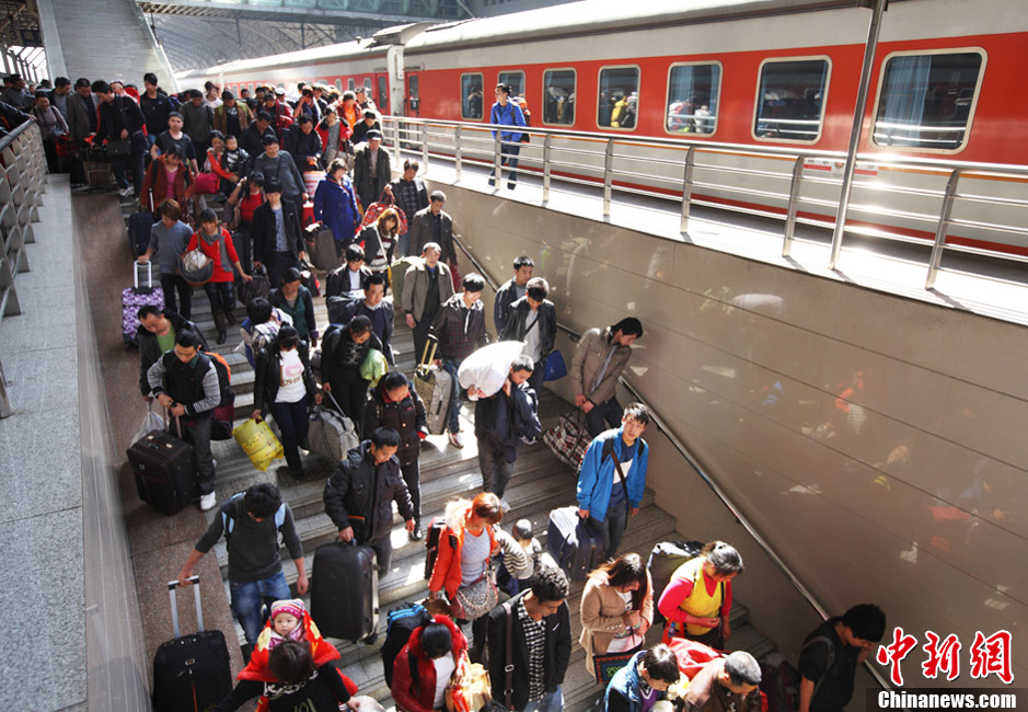 3月6日,旅客从南京火车站下车出站。当日,为期40天的春运迎来最后一天,铁路整体客流逐渐回落。中新社发 泱波 摄