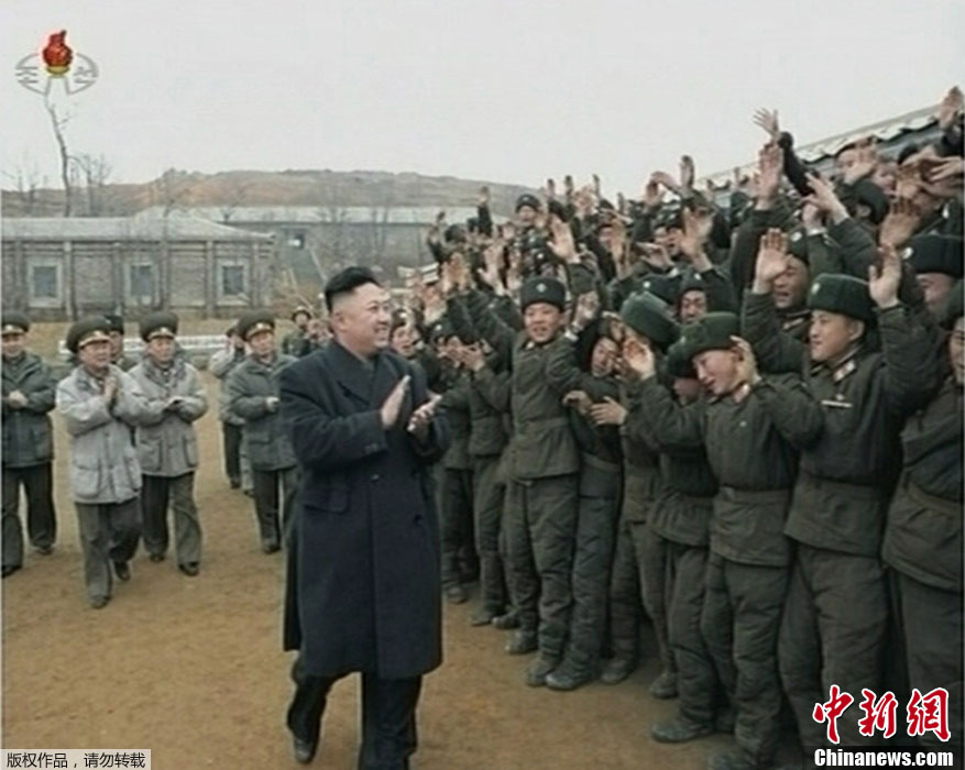 据朝中社报道,朝鲜最高领导人金正恩3月7日视察了位于朝鲜西南前线最南端的岛屿防御队。报道称,金正恩了解军队战备情况,并走进士兵营房,关心士兵的日常生活和学习,其对视察情况十分满意。(视频截图)
