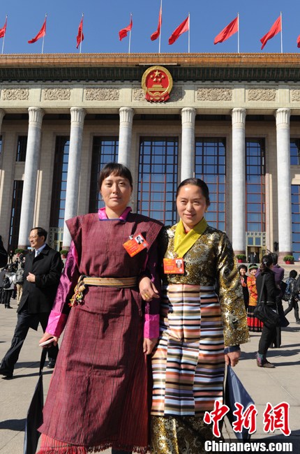 三八国际妇女节恰逢全国两会,女代表、女委员、女记者、女服务员等女性身影活跃在会场内外,格外引人瞩目。图为少数民族女代表参会。中新社发 刘忠俊 摄