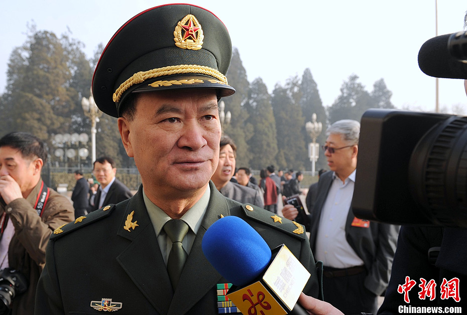 3月8日,全国政协十二届一次会议第三次全体会议举行。全国政协委员钱利华少将在大会堂前接受媒体采访。中新社发 刘忠俊 摄