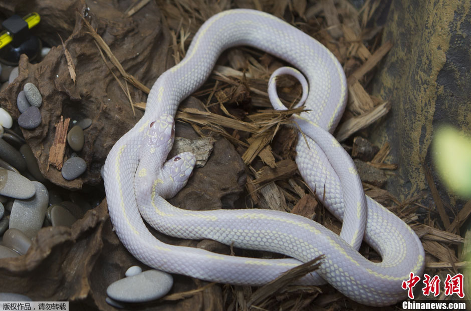 当地时间3月7日,一条十分罕见的“双头蛇”在俄罗斯莫斯科动物园进行展示。据动物园的工作人员介绍,“双头蛇”的出现概率是百万分之一,其很难在野生环境中生存。