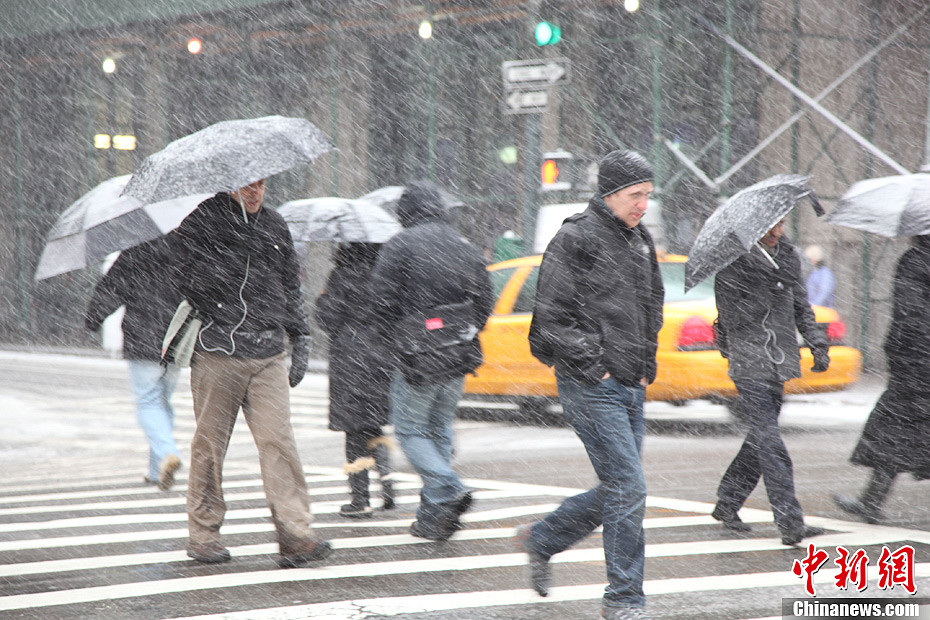 3月8日,纽约地区遭遇大范围降雪。受中西部较强暴风雪影响,7日晚间到8日,美国东北部以及纽约地区出现了大范围降雪。气象专家表示,这次暴风雪或是2013年冬季的最后一场。中新社发 阮煜琳 摄