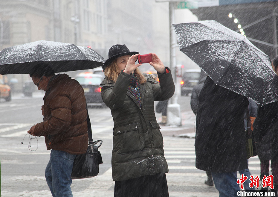 3月8日,纽约地区遭遇大范围降雪。受中西部较强暴风雪影响,7日晚间到8日,美国东北部以及纽约地区出现了大范围降雪。气象专家表示,这次暴风雪或是2013年冬季的最后一场。中新社发 阮煜琳 摄
