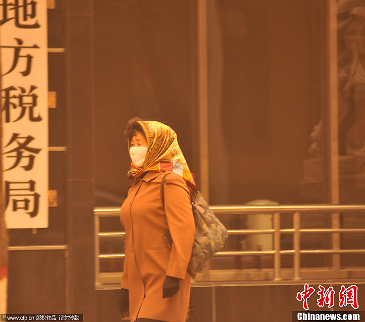 2013年3月9日,兰州突现扬沙浮尘天气,沙尘遮天蔽日,整座城市笼罩在一片黄色之中。紫烟 摄 图片来源:CFP视觉中国
