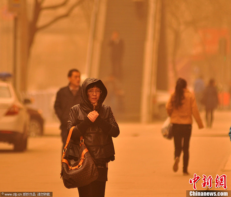 2013年3月9日,兰州突现扬沙浮尘天气,沙尘遮天蔽日,整座城市笼罩在一片黄色之中。紫烟 摄 图片来源:CFP视觉中国