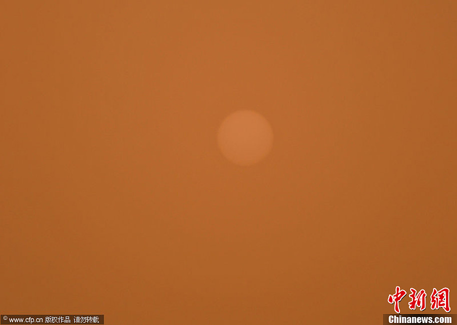 2013年3月9日,兰州突现扬沙浮尘天气,沙尘遮天蔽日,整座城市笼罩在一片黄色之中。紫烟 摄 图片来源:CFP视觉中国