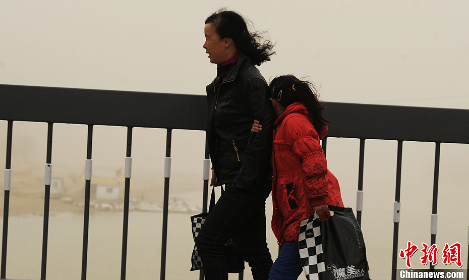 3月9日,黄沙浮尘笼罩兰州,市民纷纷“全副武装”出行,浮尘中人们表情各异。中新社发 杨艳敏 摄