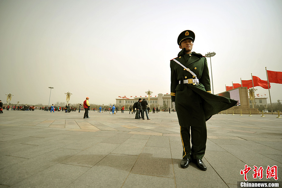 3月9日上午10时前后,北京刮起6级左右偏北风,阵风达7、8级,并伴有扬沙。中新网记者 金硕 摄