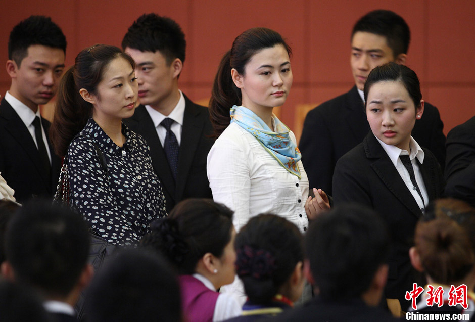 3月9日,中国东方航空江苏公司在南京面向江苏、浙江、山东、江西等省招聘空乘兼安全员,吸引了大批空乘专业的学生和具有空中乘务员和安全员飞行经历的应聘者前来。图为应聘者排队进场面试。泱波 摄