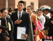 3月9日,中国东方航空江苏公司在南京面向江苏、浙江、山东、江西等省招聘空乘兼安全员,吸引了大批空乘专业的学生和具有空中乘务员和安全员飞行经历的应聘者前来。图为应聘者排队进场面试。泱波 摄