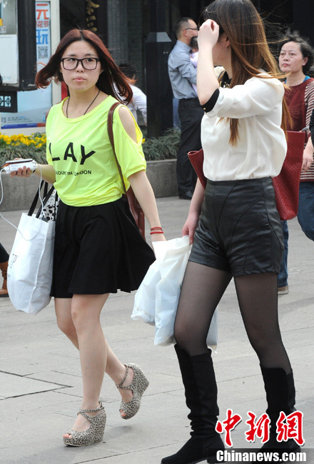 【图刊】南方多地气温飙升 街头上演“春光style”