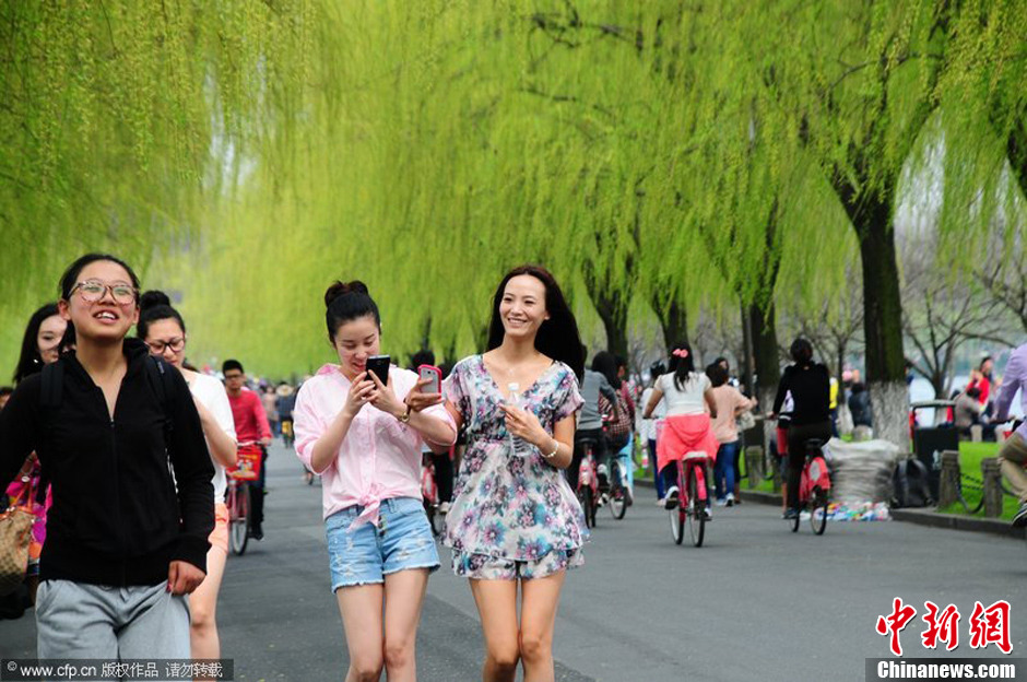 2013年03月09日,浙江省杭州市天气晴好,气温节节攀升。杭州城区为29.9℃,也再次破了3月上旬历史最高记录(2004年,28.3℃),天气犹如炎炎夏日。恰逢当日为周末,杭州各大景区游人爆棚。周炜 摄 图片来源:CFP视觉中国